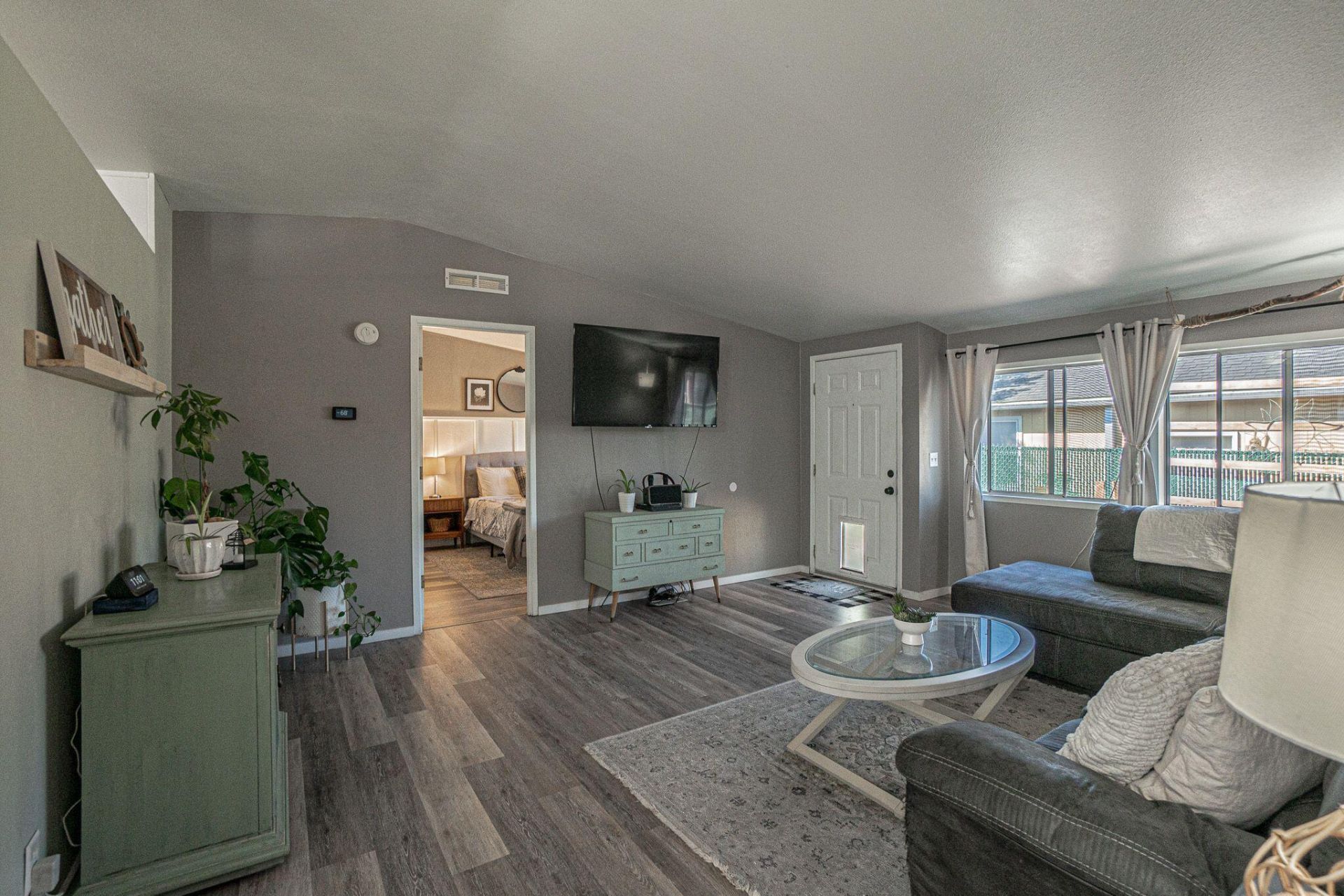 This attractive 3 bedroom, 2 bath home built in 2000 is situated on a 0.10-acre lot & features numerous updates throughout. The roof was installed in 2024; additional improvements include fresh exterior paint, updated kitchen cabinetry, and a new bathroom window. Vaulted ceilings enhance the sense of space and warmth, with laminate flooring in living areas and carpeting in guest rooms. The primary suite offers a walk-in closet and a generous bathroom. Much of the interior paint has been recently refreshed to further contribute to the inviting atmosphere. The backyard presents an ideal setting for gardening enthusiasts, with a fully fenced grassy area, multiple garden beds, and fruit trees. Two storage sheds and a covered carport provide ample utility. Located in the Hidden Grove subdivision--a community comprising both manufactured and stick-built homes--residents enjoy access to a shared common area with an inground pool, tennis & basketball courts, a clubhouse, and a playground.