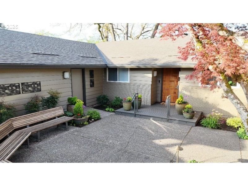 As you enter the courtyard, you know you've arrived somewhere special. Set in Riveroaks-one of Milwaukie's most inviting riverfront neighborhoods-this 1961 MCM delivers easy one-level living with sweeping Willamette River views and a floorplan built for both entertaining and everyday comfort. Walls of windows keep the riverfront setting front and center. Watch osprey and bald eagles, rowers, fishermen and boats drift by. The living and dining rooms connect to a bright sunroom with sliders to a generous terrace, while a dramatic three-sided glass fireplace anchors the main spaces. The kitchen nods to its vintage roots with a built-in double oven set into the hearth, and the large family room offers exceptional storage plus convenient access to the front courtyard for effortless indoor-outdoor living. Four bedrooms are tucked into a private wing with large closets and hardwood floors. The primary suite features an updated, spa-inspired bath with a zero-entry shower; a second updated bath offers a long soaking tub and crisp white tile. Outside, enjoy the NW landscape icon Barbara Fealey-designed landscaping, a custom carved door from another NW icon artist Leroy Setziol's studio, and a quiet neighborhood park next door. Enjoy easy access to the river for your canoe, kayak or paddleboard. THIS is like being on vacation, but at home. Come see it and you'll get it.