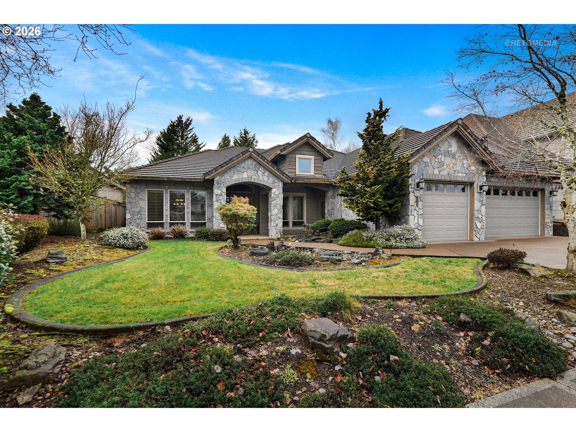 Set within the highly sought-after Sherwood View Estates, this custom-built home offers a refined take on one-level living in one of Sherwood's most established neighborhoods. Known for its enduring quality, generous homesites, and close proximity to Old Town Sherwood, this location continues to attract those seeking both convenience and a sense of retreat. Thoughtfully designed and built with lasting craftsmanship, the home spans over 3,200 square feet on one level, creating a seamless flow that supports both everyday living and effortless entertaining. Rich millwork, vaulted ceilings, and expansive windows bring warmth and natural light into the main living spaces, while carefully curated finishes reflect a level of quality that stands apart. At the heart of the home, the spacious kitchen features a large gathering island, double ovens, ample storage, a nook and a butler's pass-through, connecting the living areas seamlessly. The vaulted great room, anchored by a fireplace and custom built-ins, offers an inviting place to gather, while the formal dining room is well-suited for hosting. The primary suite provides a peaceful setting with its own fireplace, patio access, and a well-appointed ensuite with soaking tub, walk-in shower, and dual vanities. Two additional bedrooms, a dedicated office, a generous utility space and a three-car garage offer flexibility for a variety of lifestyles. Outside, the vaulted covered patio and built-in BBQ create an effortless extension of daily living, surrounded by established landscaping that offers privacy and a calm connection to the outdoors. Located just minutes from restaurants, shops, and community events in downtown Sherwood, this home presents a rare opportunity to experience elevated one-level living in a location that continues to stand the test of time.