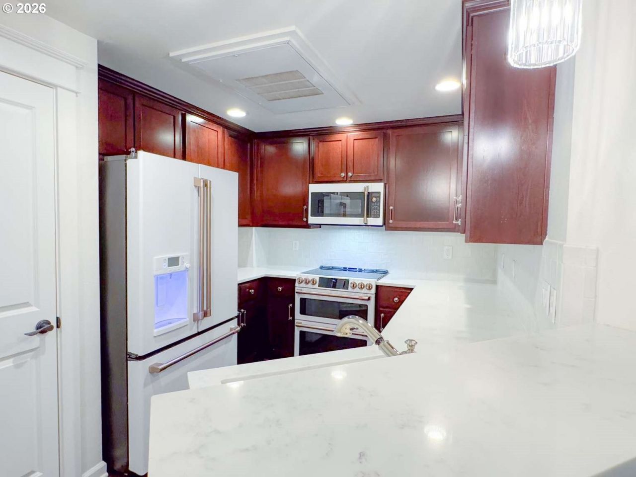 Welcome to this beautifully updated condo in the desirable Summerlinn community of West Linn. This home features a remodeled kitchen with beautiful GE Cafe appliances and quartz counters, dramatic vaulted ceiling living room with high windows that flood the home with natural light, a cozy gas fireplace, and remodeled primary suite with a luxurious tiled shower. As part of the Summerlinn community you'll enjoy access to a convenient fitness/gym room, a resort-style pool and hot tub, a huge community room for gatherings and more! Whether you're relaxing by the pool, staying active in the fitness center, or enjoying the peaceful surroundings, Summerlinn offers resort-like living right at home. This low-maintenance lifestyle is ideal for busy professionals, down sizers, or anyone seeking the perfect blend of privacy and community in a prime West Linn location.
