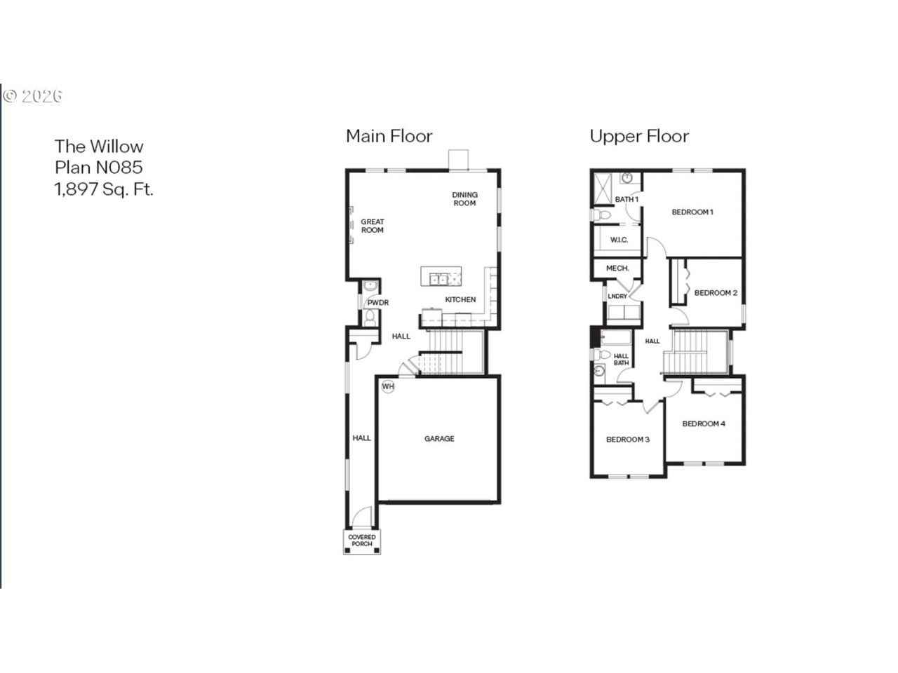 This two-story home offers 1,897 square feet with 4 bedrooms, 2.5 bathrooms, and an attached 2-car garage. The covered front porch leads into a welcoming entry with a conveniently located powder room, additional storage, and direct garage access. The kitchen has solid-surface countertops, an island with integrated sink, shaker-style cabinetry, and ample counter space, opening seamlessly to the dining and great room-ideal for everyday living and entertaining. Upstairs, all four bedrooms are thoughtfully arranged. The primary suite features an en suite bathroom with a walk-in closet, single-sink vanity, and walk-in shower. Three secondary bedrooms share a full bath, and the upstairs laundry room adds everyday convenience. Receive a closing cost credit with use of seller's preferred lender. Ask for more details. Sales office hours at Butler Creek Crossing in Gresham are 9:30am-4:30pm Wednesday - Sunday. Photos are representative; features and finishes may vary.