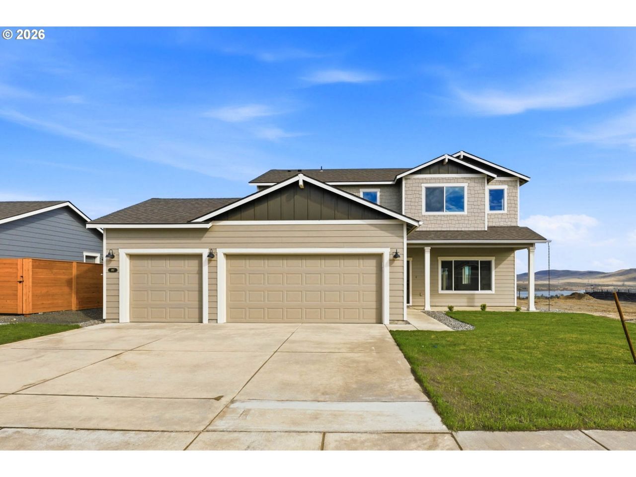 LOT:MS71 - MOVE-IN READY!!! - Brand new 2373 sqft two level home located in the desirable McClannahan Summit neighborhood in Umatilla OR with breathtaking unobstructed views of the Columbia River. Stand out features of this 4 bedroom 2.5 bath home include a deluxe chef's kitchen with quartz counters, walk-in pantry, island, farm sink and stainless steel appliances including dishwasher and built-in gas range. Luxurious main level primary retreat and ensuite with double sinks, shower, and large walk-in closet. The Theilsen plan built by award winning builder MonteVista Homes. Great room open design, 9ft ceilings, spacious loft / bonus space, 95% high efficiency gas forced air heating, air conditioning, electric fireplace with shiplap accent wall, laminate flooring all throughout, dedicated laundry room, fully insulated 3 car garage, fully fenced, front and backyard landscaping, and extended 14x10 covered patio.