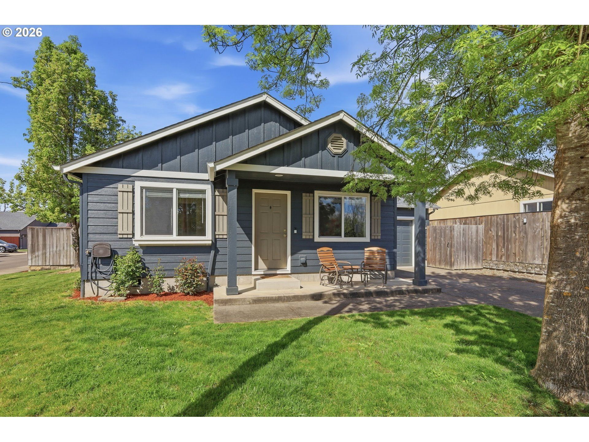 Located on a desirable corner lot in the Jasper Meadows neighborhood of Thurston! Tucked away at the far end of the subdivision, this adorable 2-bedroom, 1-bath home offers a peaceful setting with convenient access to nearby parks, recreation, and shopping. Step inside to a functional and inviting floor plan designed for comfortable living. The spacious great room concept flows seamlessly, complemented by generously sized bedrooms and stylish updates throughout. The kitchen features built-in appliances, including a dishwasher and microwave, and offers both convenience and charm. Outside, enjoy a fully fenced and irrigated yard-perfect for entertaining-with a fantastic outdoor space ready for year-round gatherings. This remodeled and move-in-ready home is truly 'cute as a button and presents a rare opportunity to own a newer home at an affordable price. Don't miss it! Open Houses Friday from 5-7pm, Saturday from 12-2pm, Sunday, 11am-1pm!