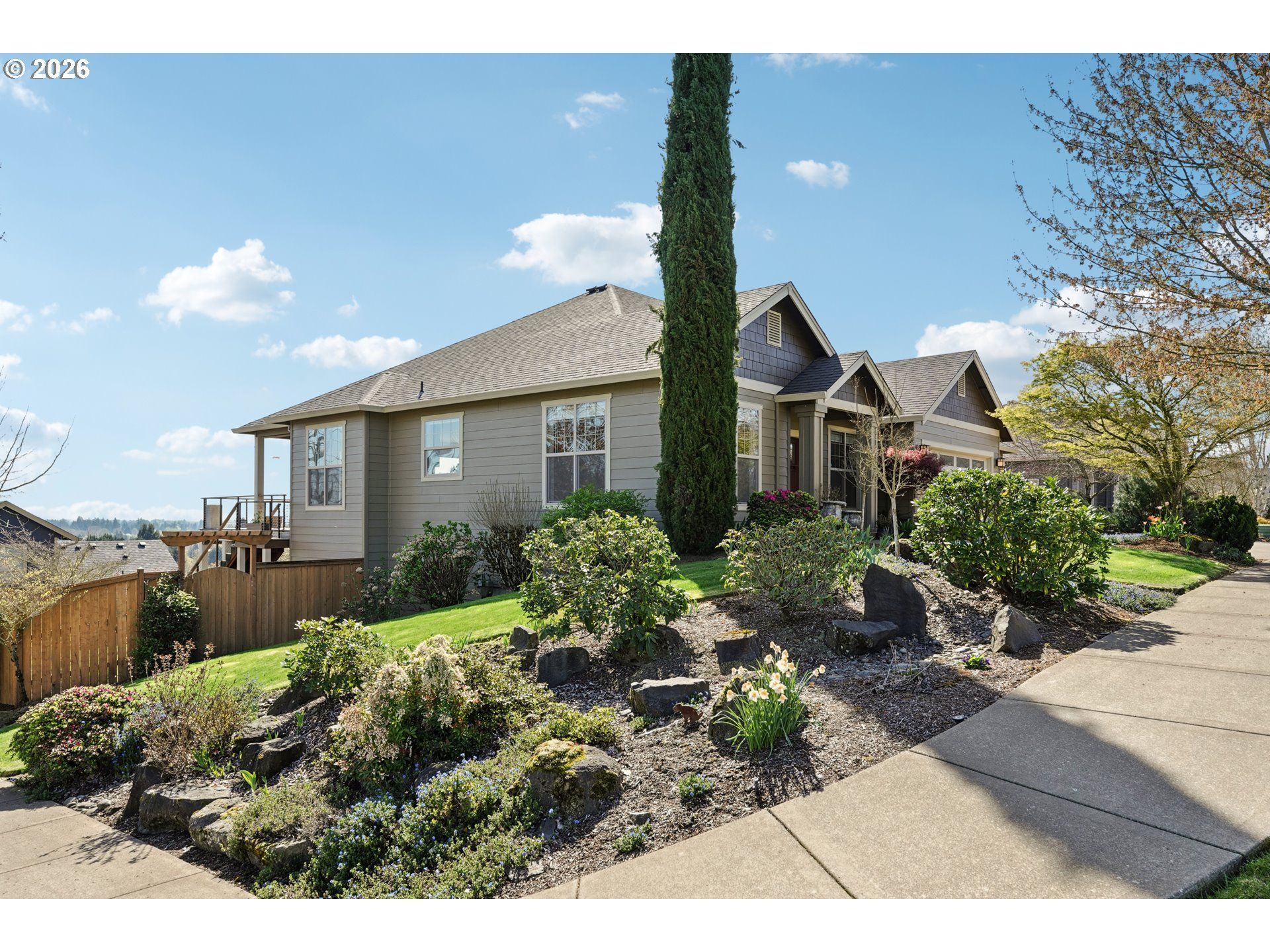 Beautiful, well-kept home in one of McMinnville's most desirable neighborhoods! This thoughtfully designed residence offers a primary suite on the main level, complete with an extra-large jetted soaking tub, walk-in shower, and spacious walk-in closet. The open-concept living area features stainless steel appliances, a built-in wine rack, and abundant natural light-perfect for both everyday living and entertaining. Enjoy premium outdoor living with covered, top-of-the-line Trex decking accented by Ipe wood and sleek stainless steel railings-ideal for taking in the stunning views of Mt. Hood and Mt. Jefferson. A decorative water feature welcomes you at the main entrance, while the waterproof covered patio below provides additional year-round entertaining space. The outdoor area also includes a 10x12 shed for added storage. This home is equipped for comfort and efficiency with dual zone heat pump, two fireplaces (gas upstairs, pellet downstairs), two water heaters, LiftMaster side-mount garage door openers, and an exterior generator plug. The garage features newer custom made insulated roll-up doors (R-11), is fully insulated, and includes HVAC vents. The property has been meticulously maintained with regular 6-month HVAC servicing and quarterly pest control as part of a long-term preventative maintenance program. Ample storage throughout adds to the home's functionality. Ideally located near neighborhood parks and scenic walking trails, this home offers easy access to outdoor recreation while being just minutes from McMinnville's charming downtown, local shops, and dining. Mortgage savings may be available for buyers of this listing.