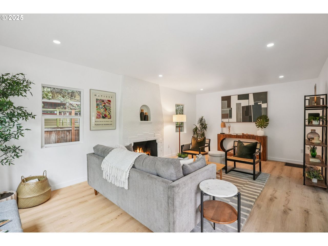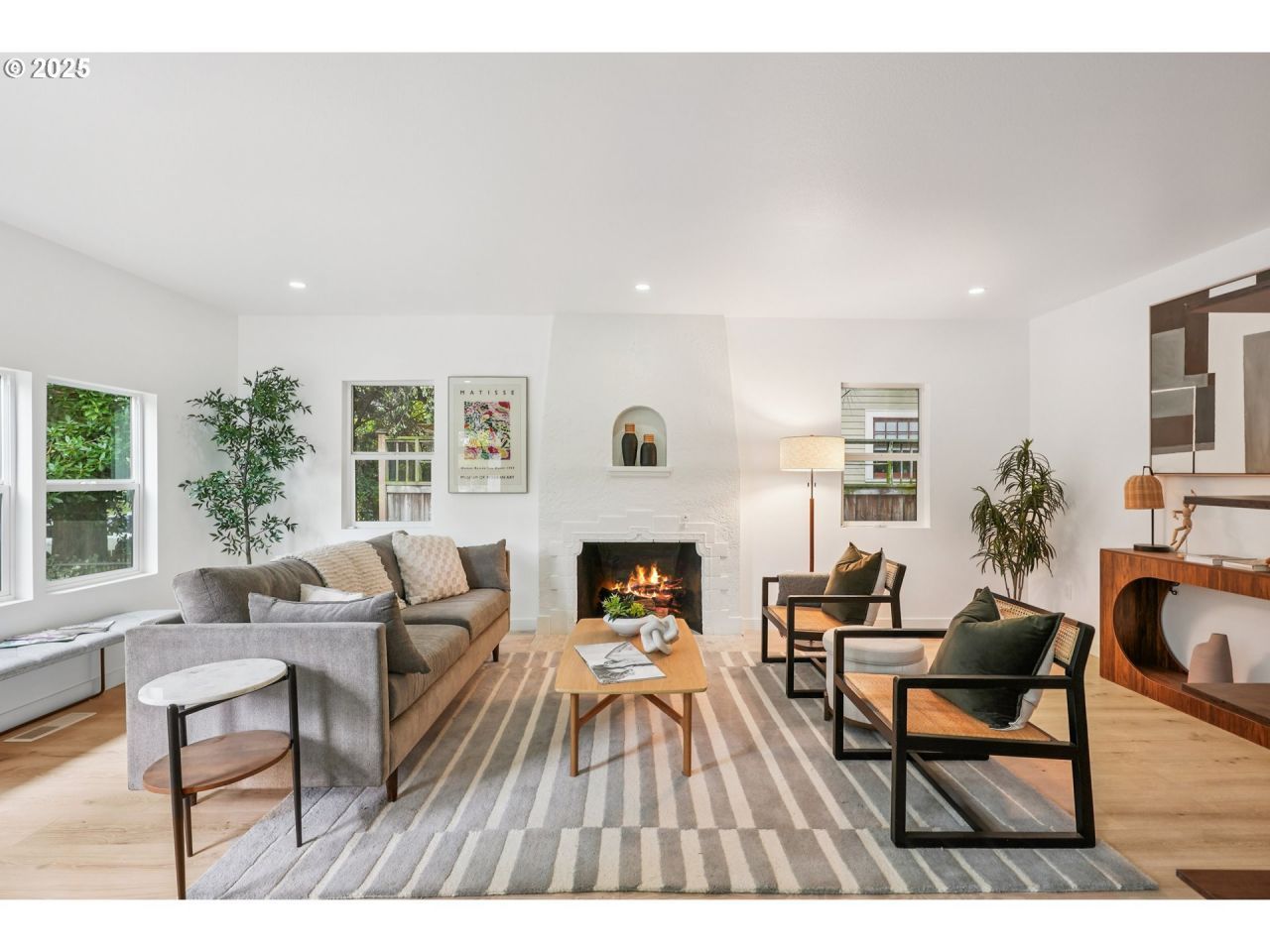 This tastefully remodeled NE Portland home sits on a quiet street and offers thoughtful updates throughout. The living room features a beautiful fireplace and flows seamlessly into the dining area and modern kitchen, complete with new cabinets, quartz countertops, tile backsplash, and brand-new appliances.The main floor includes two comfortable bedrooms and a full bathroom. Upstairs, you'll find a spacious primary suite with a walk-in closet and spa-inspired ensuite featuring a double vanity, soaking tub, and tiled shower-plus a fourth bedroom, perfect for a home office or nursery.The expansive basement offers excellent ADU potential or can be customized into a guest suite, gym, or media room. Outside, enjoy fresh sod in the front and back yards, with alley access to a detached two-car garage. Stylish, functional, and move-in ready with space to grow!New Roof, siding, windows, sewer, electrical panel, wiring, pex, sheetrock, paint exterior/interior, furnace & A/C, fully permitted upstairs primary suite, and a decommissioned oil tank.