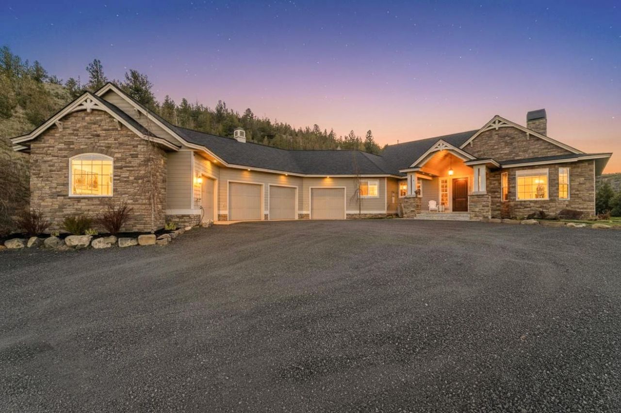 Stunning custom home perched atop a private hill with panoramic views of the entire valley and Prineville. This home showcases an elegant stone-covered entrance opening into a formal entry, spacious office, & open living area framed by windows accentuating natural light. Stone surround gas fireplace anchors the great room, gourmet kitchen features granite counters, large island, oak cabinetry, pantry, drink bar, and dining area. Primary suite has a soaking tub, walk-in tile shower, & private slider to the outdoor patio. Dedicated library with fireplace & custom built-ins, 2 more bedrooms with a Jack-and-Jill bath. Incredible covered Lanai provides the ultimate entertaining space with a fireplace, TV, automatic shades, custom lighting, stamped concrete patio with heat around large in-ground hot tub, outdoor shower, bathroom, & mechanical room for future pool. Phenomenal sunrises & sunsets. 2,000 sqft 4 car garage with heat & A/C, air compressor connect, full bath & upstairs bonus space.